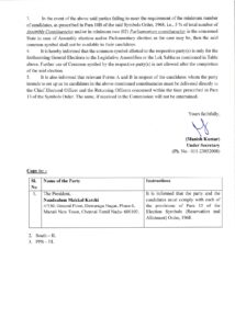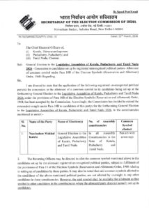இந்தியத் தேர்தல் ஆணையம், தமிழ்நாடு, புதுச்சேரி மற்றும் கேரளா ஆகிய மூன்று மாநிலங்களில் போட்டியிட, “பேனா முனை” சின்னம் ஒதுக்கீடு